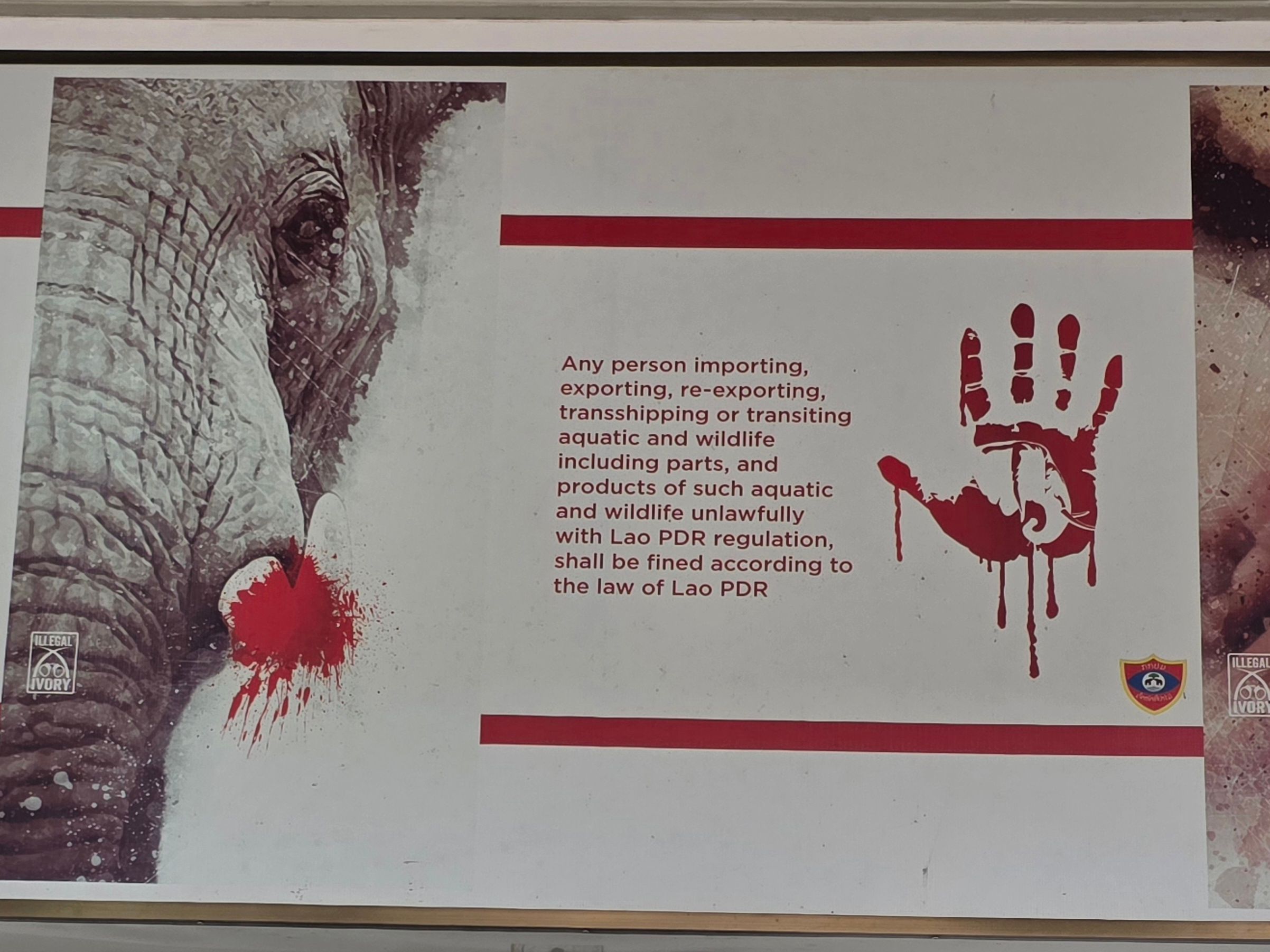 Sunday. The end of week one and I am taking a prop Laos Airlines flight back to Vientiane where I will be collected and driven to the LCTW project. Initials for the Laos Conservation Trust for Wildlife. A timely reminder of the work to be done was the signage at customs (main shot) written in Lao, Chinese and English.