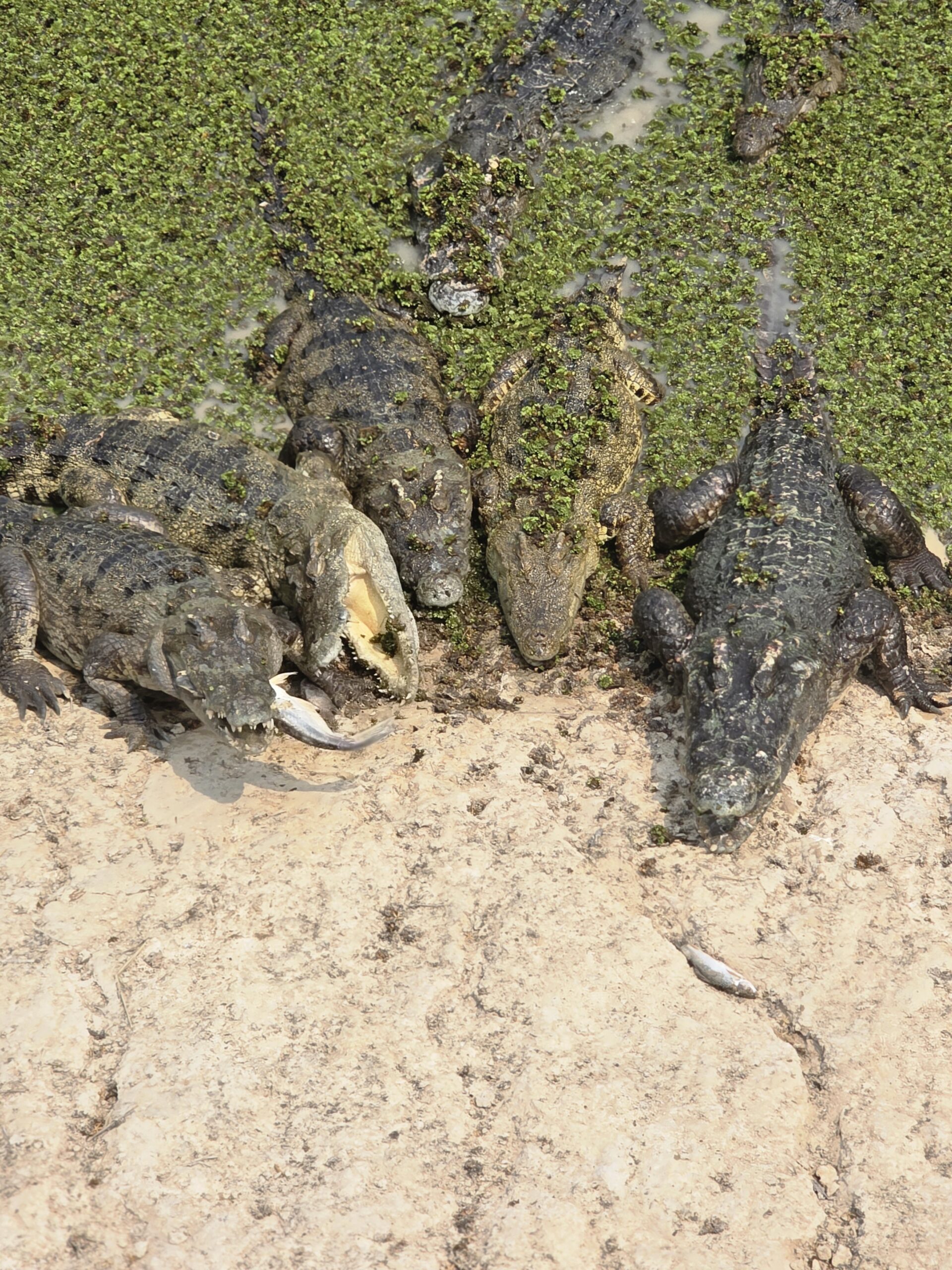 Another madly busy day. Food preparation, then ‘Upstairs’ huff puff, 38 degrees and 45% humidity to feed and muck out the primates. Machete some grass for the newly arrived Muntjac and made 30 lollipops for the bears to fight over tomorrow. But today’s highlight was feeding the 74 adult crocodiles their once-a-week fish dinner. I don’t know exactly how much this was, but my guess is 90 to 100kg. Maybe not as much as I imagined, when in Africa, one wildebeest at the Mara River crossing never seems to be enough.