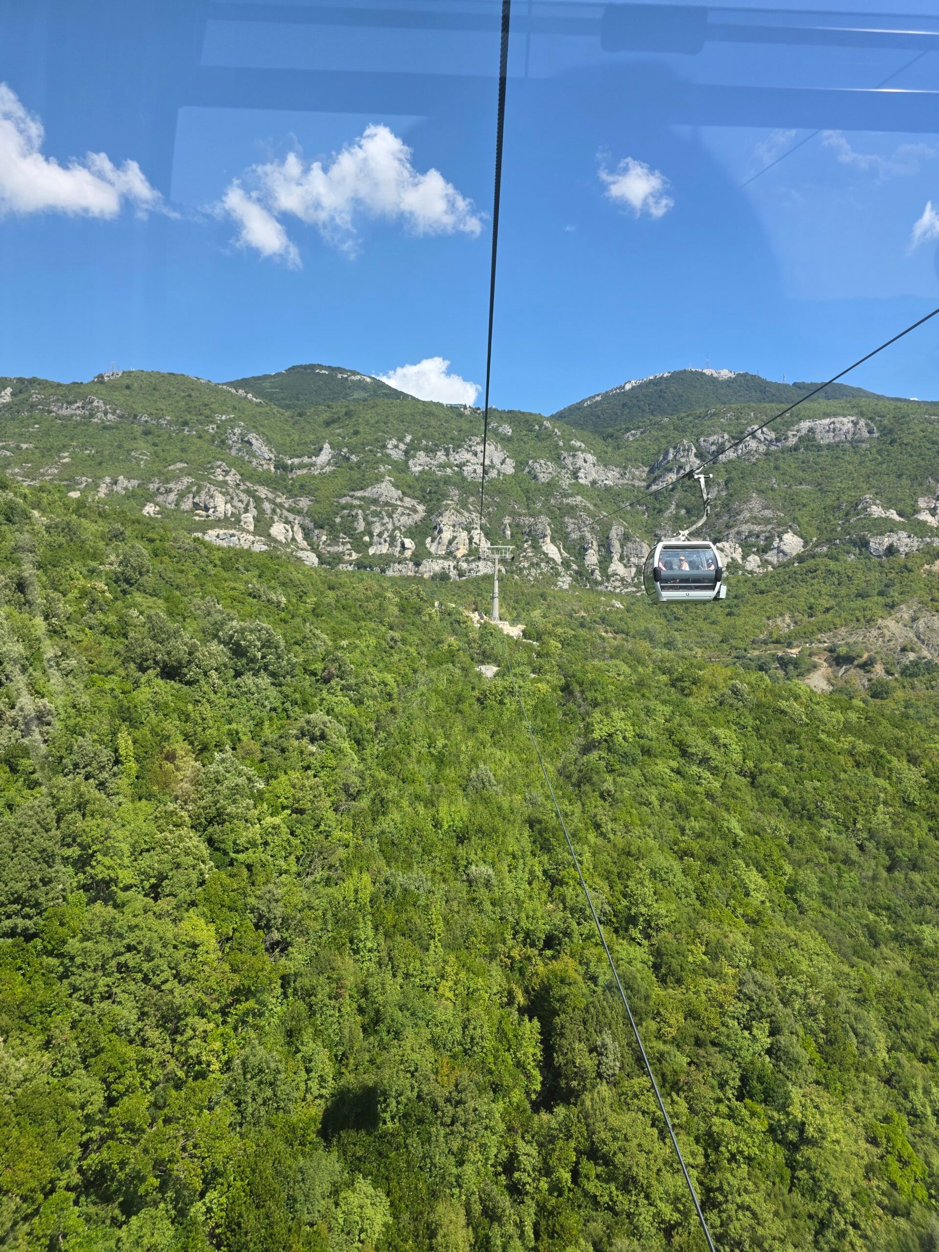Wonderfully, just a 5 minute walk from the bunker exit is the lower station of the Datji Express Cable Car. The cable car takes you on a beautifully silent 15 minute trip up the side of Mount Datji ( at 1613m / 5300 feet) where you get a majestic 180 degree view of the city below, mountain ranges to north and south as far as you can see and the Adriatic in front . Breathtakingly beautiful, refreshing and uplifting me back in to the 21st century.